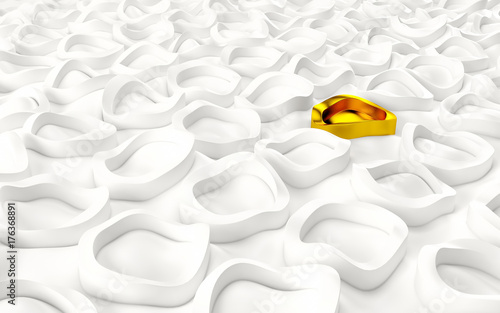 Naklejka premium Abstact biały nowożytny architektury tło z białymi falistymi okręgami i jeden złotem na ścianie. Renderowania 3d