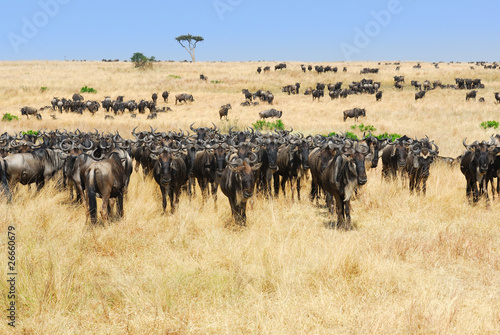 © Oleg Znamenskiy, Fototapeta premium Afrykański krajobraz z antylop gnu