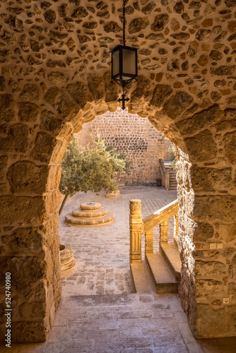 © Mazur Travel, Fototapeta premium Arched way to inner yard of the Mor Hananyo Monastery in Mardin, Turkey