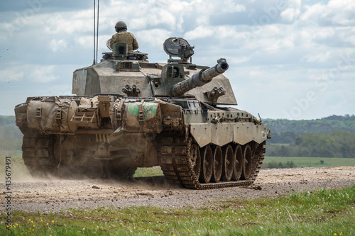 © Martin, Fototapeta premium British army Challenger 2 ii FV4034 Main Battle Tank on deployment in action on a military battle exercise, Wiltshire UK
