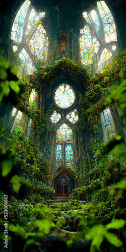 © Visual Voyager, Fototapeta premium Inside An Abandoned Overgrown Gothic Cathedral