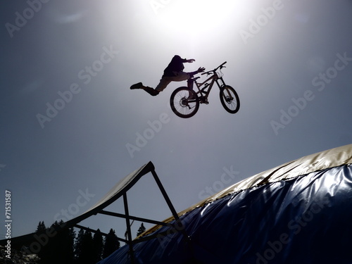 © flucas, Naklejka premium jeździec dirtbike bmx skacze przed słońcem