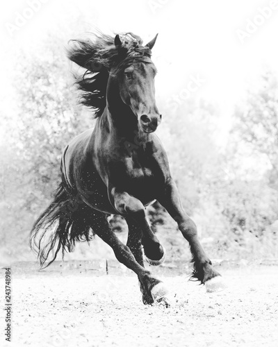 © Luckyshots, Fototapeta premium Koń fryzyjski czarno-biały