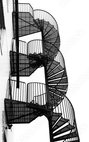 © Anette Andersen, Naklejka premium Kręte metalowe spiralne schody, czarno-biały obraz.