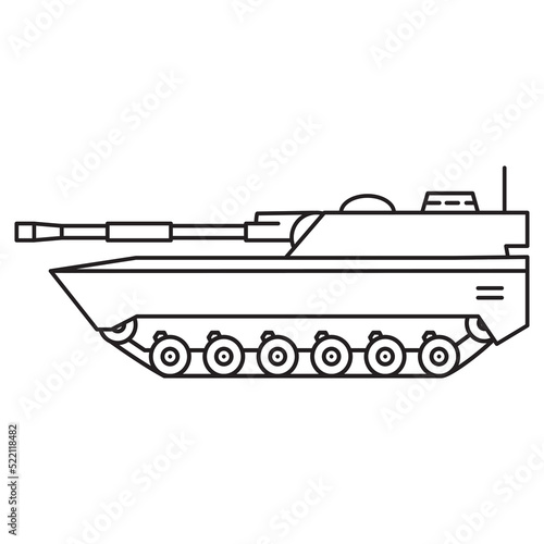 © dukesn, Obraz premium Military modern tank icon vehicle vector line icon. Self-propelled artillery installation.Outline vector illustration. Isolated on white background.
