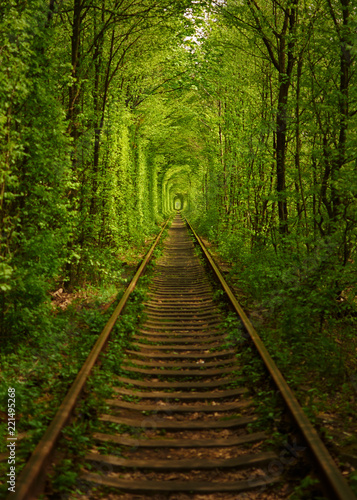 Fototapeta premium Naturalny tunel utworzony przez drzewa na Ukrainie, nazywany Klevanem tunelem miłości