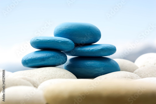 © lidomo, Obraz premium Niebieskie kamienie w równowadze