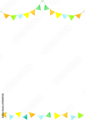 © 一色いっさ, Obraz premium カラフルなガーランドの背景(A3サイズ) 手描き水彩イラスト素材