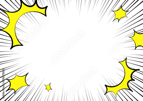 Obraz premium 黄色い衝撃波の漫符と集中線の背景イラスト A4サイズ横