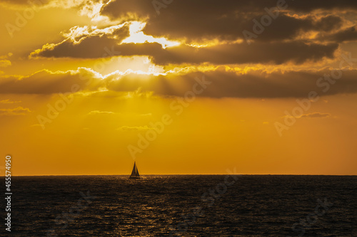 © Moshe Einhorn, Fototapeta premium A Aailboat at Sunset Time