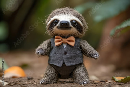 Fototapeta premium A adorable little sloth in dapper suit and bow tie brings joy and charm to...