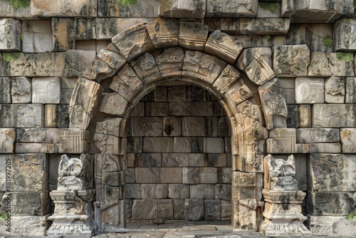 © Fotograf, Fototapeta premium A ancient stone archway with intricate carvings on either side