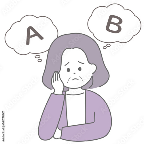 Obraz premium AかBかで悩んでいる高齢の女性のイラスト