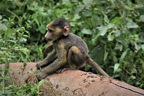 © naturespy, Fototapeta premium A baby baboon alone on a tree