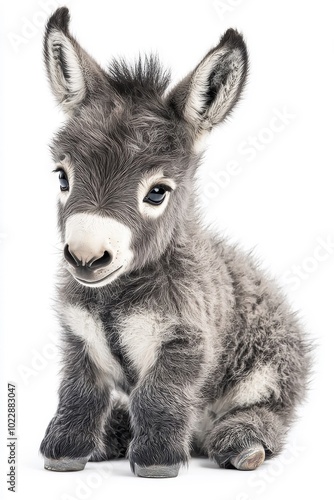Fototapeta premium A baby donkey, isolate on white background, showcasing its adorable features...