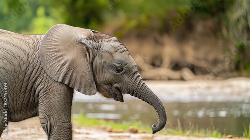 © Nazia, Obraz premium A baby elephant, loxodonta africana, using its trunk to smell.