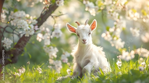 © Yelena, Obraz premium A baby goat playing on the green grass image
