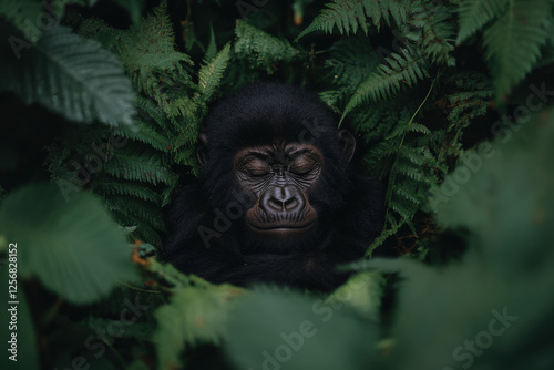 Fototapeta premium A baby gorilla is sleeping in the jungle