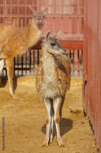 © schankz, Obraz premium A baby llama standing in a dirt pen