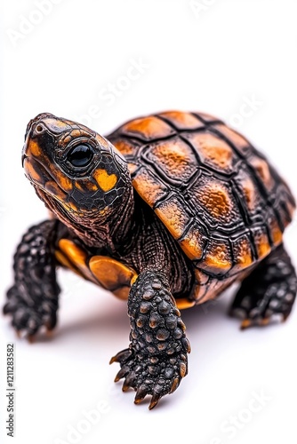 Obraz premium A baby turtle, isolate on white background, radiating cuteness with its tiny...