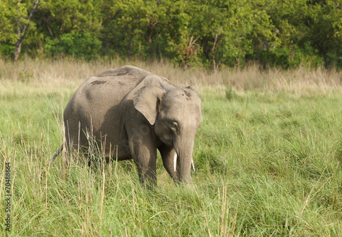 © Dr Ajay Kumar Singh, Fototapeta premium A baby tusker grazing grass