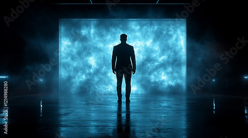Fototapeta premium A back view silhouette of a man in a space concept background, highlighting...