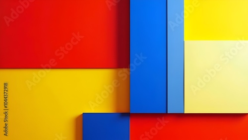 © Hina, Fototapeta premium A Background Featuring Large, Bold Blocks of Red, Blue, and Yellow with Clean Lines and Sharp Edges for Balanced Simplicity