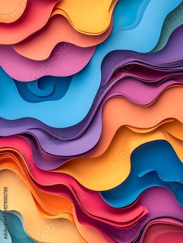 © PSCL RDL, Obraz premium A background of colorful paper cut-out shapes layered dynamically.
