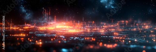 Fototapeta premium A background of holographic charts and graphs fading into deep space.
