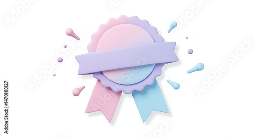 Fototapeta premium A badge style circular banner with ribbon ends and soft shadows, pastel colors, white background