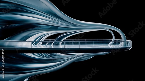 © lonelyArt, Obraz premium A balcony with a glass railing is suspended above a flowing, wave-like structure