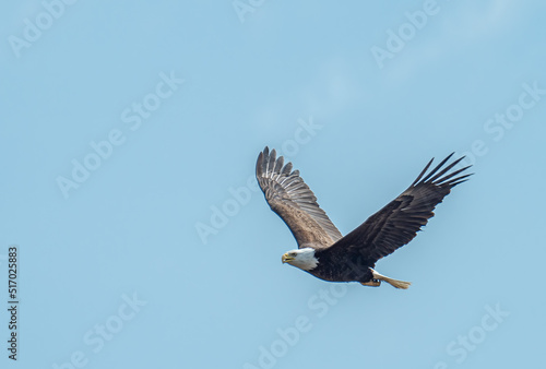 Fototapeta premium A bald eagle flies high in the sky