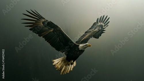 Obraz premium A bald eagle flying in sky in wild.