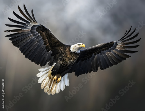 Fototapeta premium a bald eagle flying with its wings spread