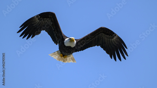 Fototapeta premium A Bald Eagle in Flight in Washington State USA