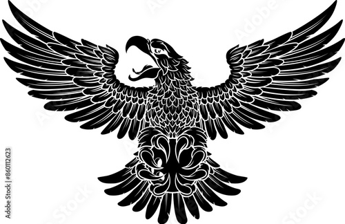 © Christos Georghiou, Fototapeta premium A bald eagle or hawk flying with a ten pin bowling ball in their claws sports mascot