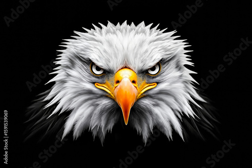 © Digi, Obraz premium A bald eagle's head on a black background