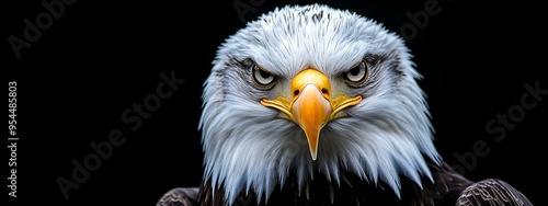 © Wall, Fototapeta premium A bald eagle's intense face, in tight focus, against a black backdrop