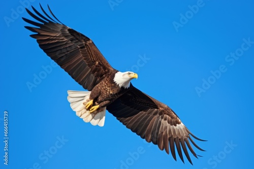 Fototapeta premium a bald eagle soaring in a clear blue sky