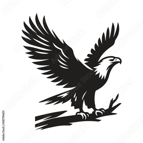 © Fa_art, Fototapeta premium A bald eagle standing on a tree branch wings slightly lifted vector illustration