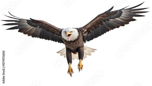 Obraz premium A bald eagle with its wings spread, flying towards the camera with a fierce...
