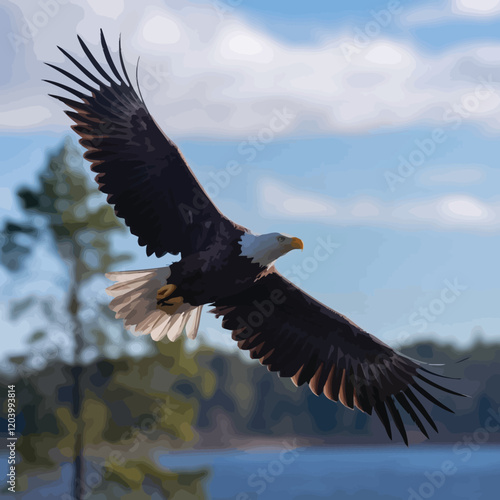 Fototapeta premium "A bald eagle with its wings spread wide."