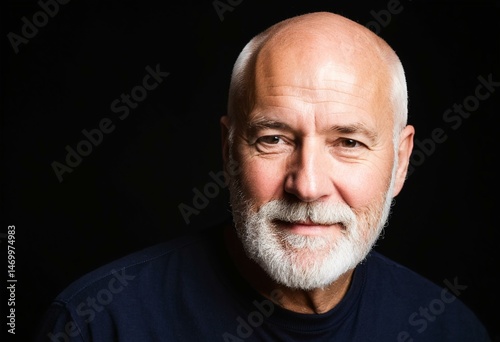 © Aimar, Obraz premium A bald man with a white beard smiles at the camera.
