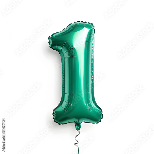 © Muhammad, Fototapeta premium A balloon shaped like the number 1,emerald green metallic finish with realistic reflections and smooth texture.