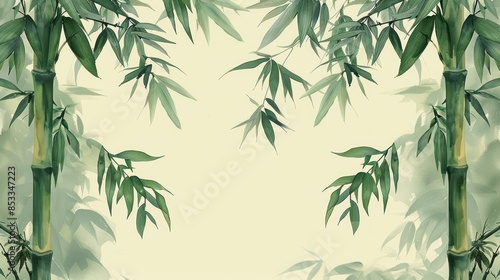 © Praphan, Obraz premium A bamboo border in muted greens, flat design, and repeating pattern.