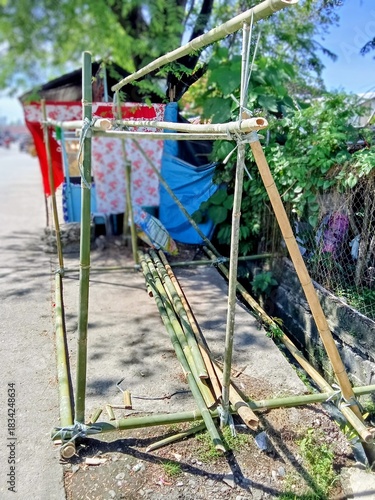 Fototapeta premium A bamboo structure on the street of an Asian country.