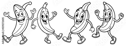 © SrDesgin , Fototapeta premium A banana character dancing coloring page