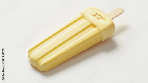 © Napasnan, Naklejka premium A banana popsicle ice cream with a realistic shape, neatly placed on a white background