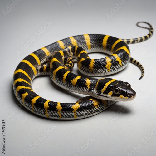 © Muhammad, Naklejka premium A banded krait with black and yellow stripes on a white background.