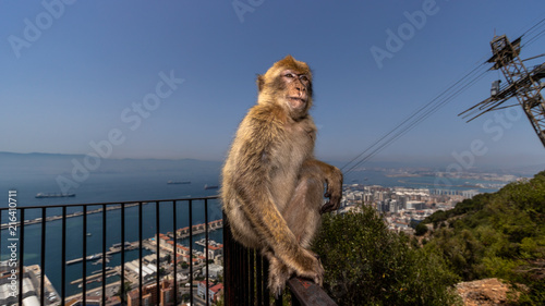 Naklejka premium A Barbary macaque monkey in Gibraltar on a sunny day in August.